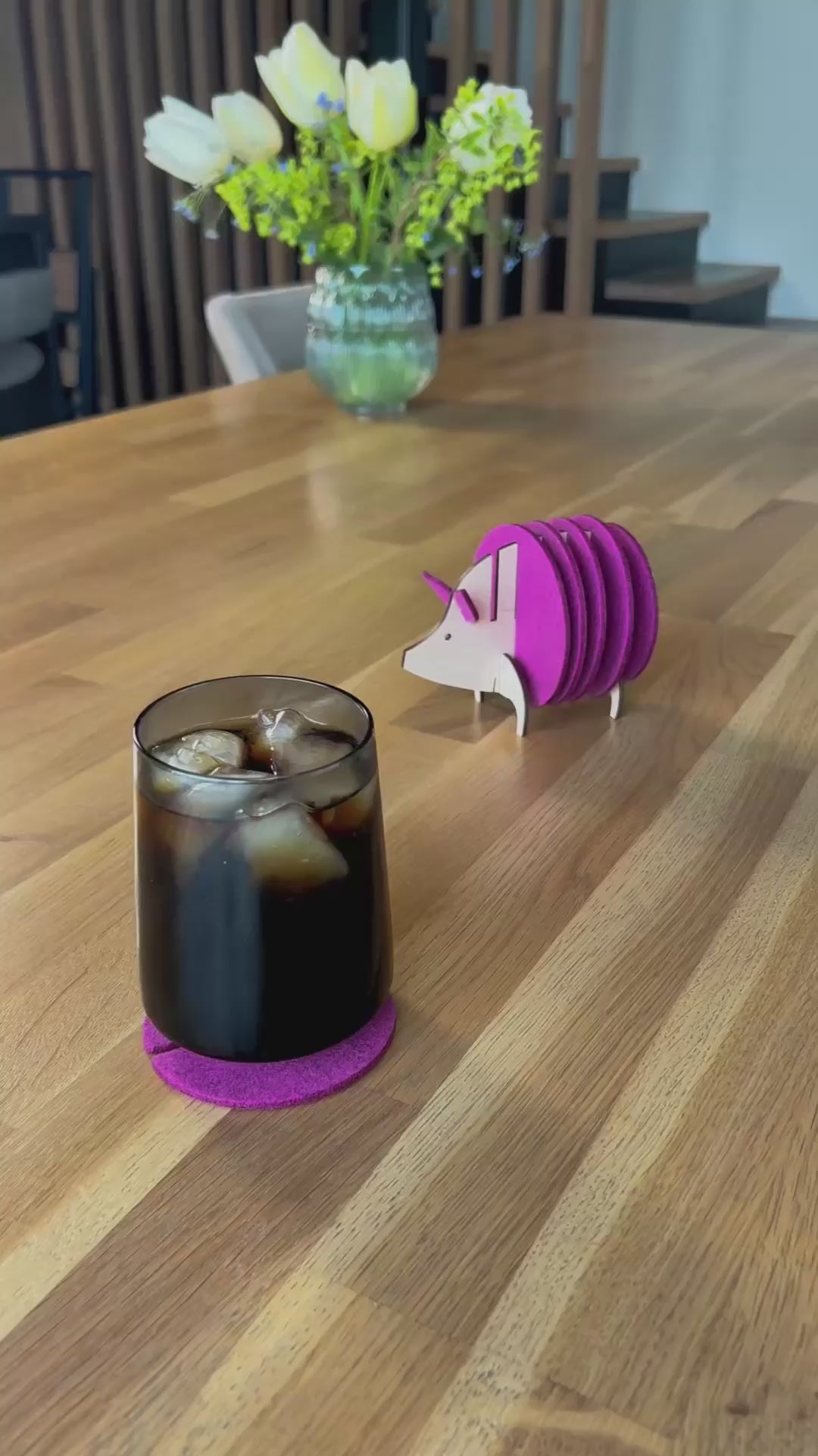 Hľadáte bytový doplnok, ktorý je rovnako šikovný ako pôvabný? Zoznámte sa s podložkami pod poháre, rozkošným dreveným prasiatkom, ktoré nielenže dodá vášmu interiéru hravý nádych, ale zároveň obsahuje šesť plstených podložiek pod poháre, ktoré ochránia váš nábytok pred otravnými škvrnami! Je to rozmarné, no zároveň praktické riešenie pre vaše stoly, navrhnuté tak, aby bez námahy spojilo užitočnosť so štýlom. Potrebujete podložku pod pohár? Jednoducho si jednu vyberte z chrbta prasiatka. Hotovo na dnes? Prasiatko zostane na vašom stole alebo poličke a zároveň slúži ako rozkošný dekoračný kus.