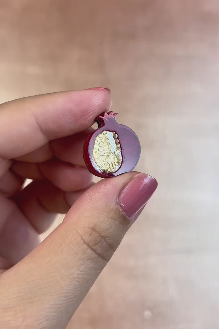 Pozdvihnite svoj štýl bez námahy s našou ručne vyrobeným pinom z granátového jablka, živým módnym doplnkom, ktorý je jedinečný a ľahký zároveň.