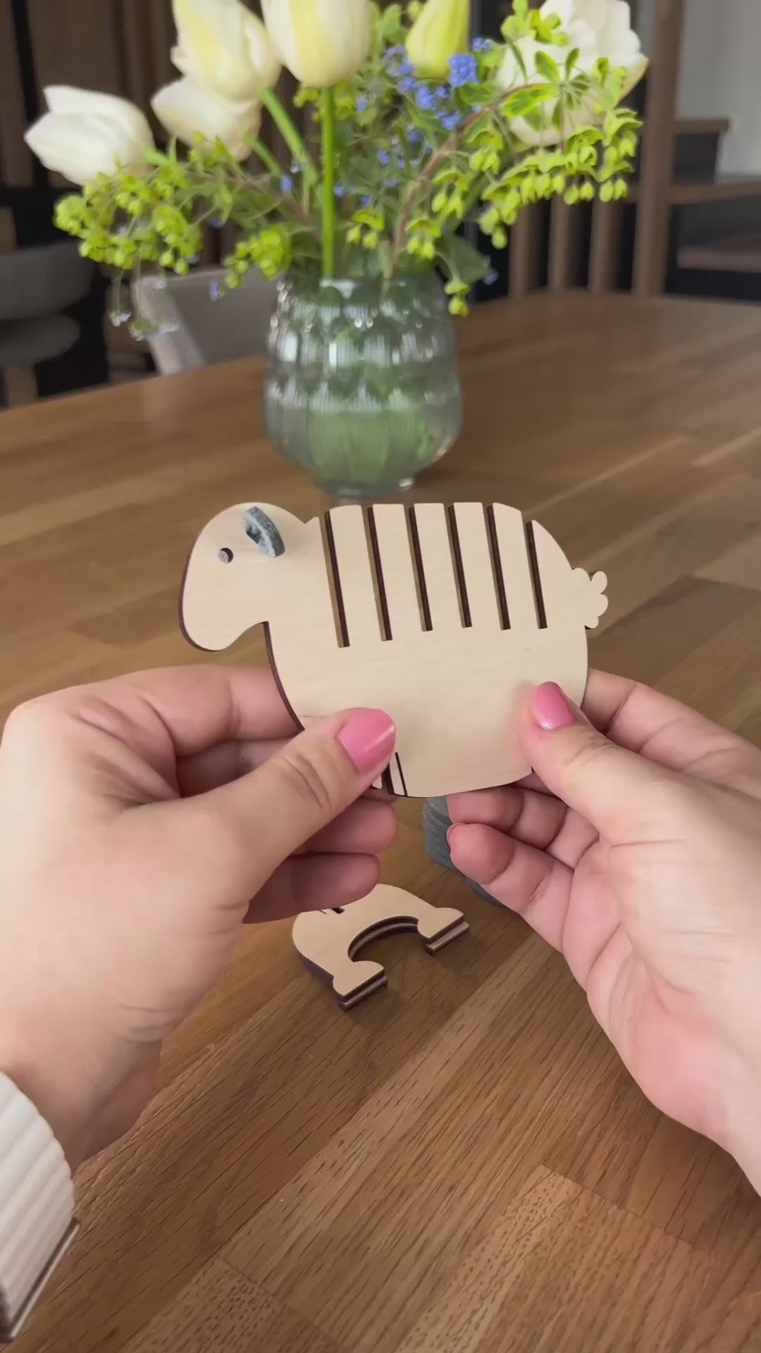 Vtipný kus bytovej dekorácie 2-v-1! Táto drevená ovečka pojme šesť plstených podložiek, čím spája funkčnosť s nádychom šarmu na vašom stole alebo poličke.