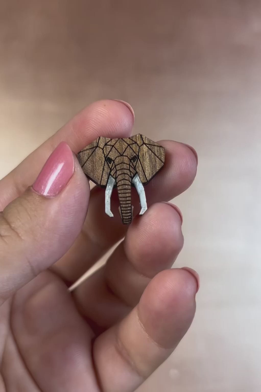 Pozdvihnite svoj štýl s ručne vyrobeným pinom v tvare slona, ktorý stelesňuje ekologickú eleganciu v elegantnom geometrickom dizajne.