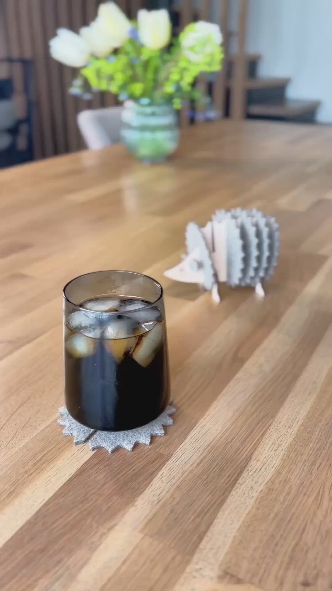 Vyrobené s opatrnosťou z prémiovej brezovej preglejky a vysoko kvalitnej hustej PET plsti vyrobenej v EÚ. Tento malý ježko je vyrobený pre dlhú životnosť. Jeho laserovo rezané presné spracovanie zaisťuje bezproblémovú montáž a dodáva sa v kompaktnej krabici pre jednoduchý zážitok zo skladania, podobne ako uspokojujúce 3D puzzle. Každá podšálka má jedinečnú veľkosť, takže sa na ňu zmestí všetko od malej šálky na espresso až po výdatnú misku na polievku. Bez ohľadu na to, aký nápoj alebo jedlo používate, postará sa o vás.